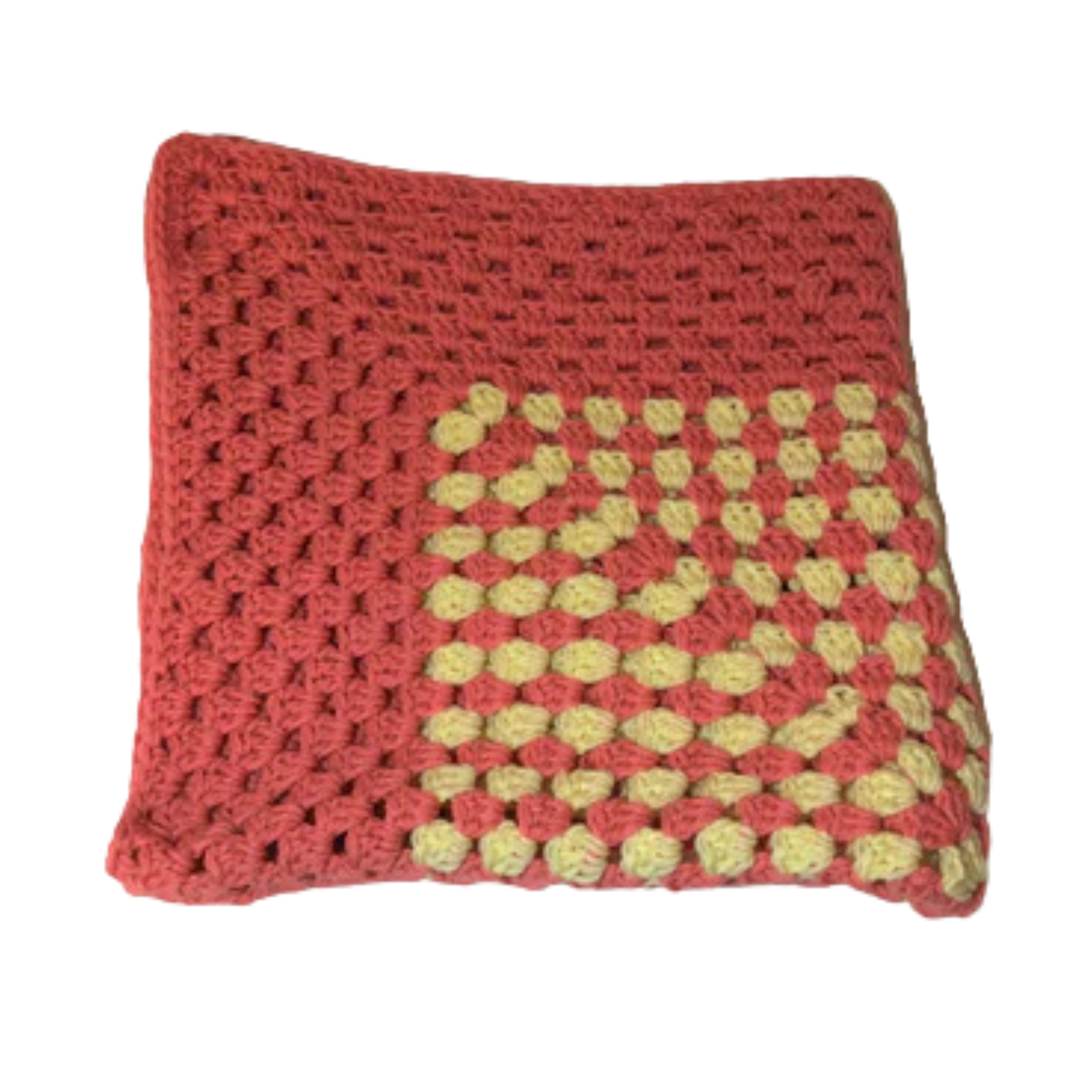 The Peach Twist Granny Blanket blends soft warmth with a bold, modern twist. Featuring a beautiful mix of peachy coral and creamy yellow, this blanket showcases a striking spiral-style granny-square pattern that draws the eye in. The thick, textured stitches make it extra cozy and perfect for snuggling on the couch, adding a pop of color to your bed, or styling as a decorative throw. Handmade with care and personality, this blanket brings both comfort and charm to any space.